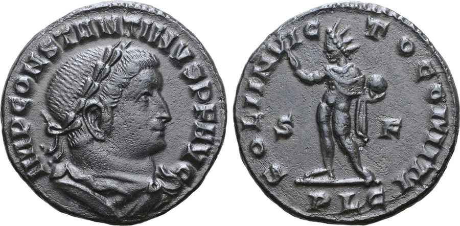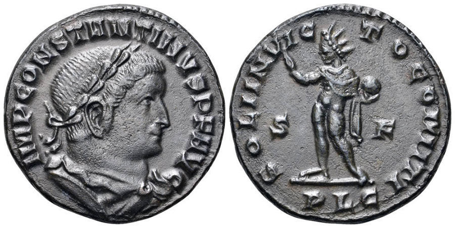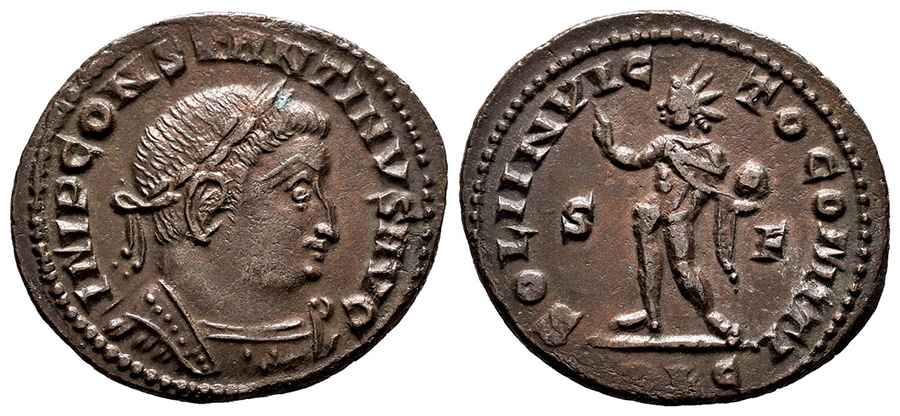 İlk görsel arka yüz SOLI INVICTO COMITI lejantı mevcut, bu lejant Büyük Konstantin sikkelerinde bulunur.